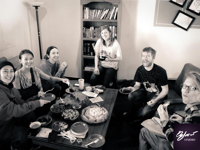 The day before we were to fly out, Brett had organised a surprise birthday party at Pour House Cafe with friends, it was so incredible to see our close friends there, and an amazing spread of beautifully sliced fruit and a yummy chocolate cake Brett had secretly baked the night before! I must have been drugged up well if I didn’t have a clue about such a surprise. In the afternoon, we had a picnic on frozen Lake Dillon with Brian & Aurora, and that night Brett & I hung out at Twisted in Breckenridge. What a birthday treat!