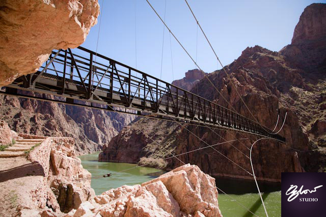 5am wake up to catch the sunrise over the Grand Canyon was a beautiful experience. Our photoshoot was freezing, but well worth the effort. With the challenge of completing the rim to rim hike, we took the bus to start of the South Kaibab Trail. We found out at a later date that people tend to do this 27km hike over two days. Brett thought we could do it in one, and so we took up the challenge. The 11km hike down to the river at the bottom of the Grand Canyon felt rather effortless to the point where we were running at times. We were fortunate to see a Condor flying over our heads at the beginning of our hike, a Condor is a black scavenger bird with a bald red head and beak, approximately the size of a bald eagle.